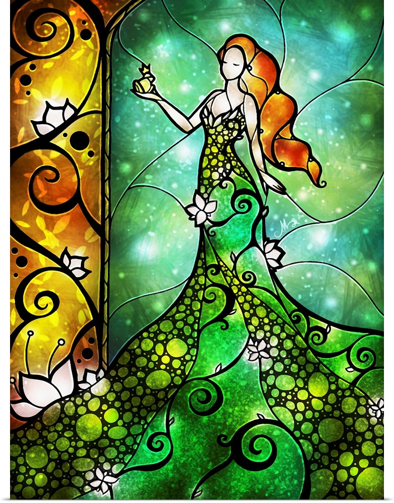 Art Contemporary Art Fantasy Knights and Princesses Graphic Art Green Wall Art Mandie Manzano People Figurative