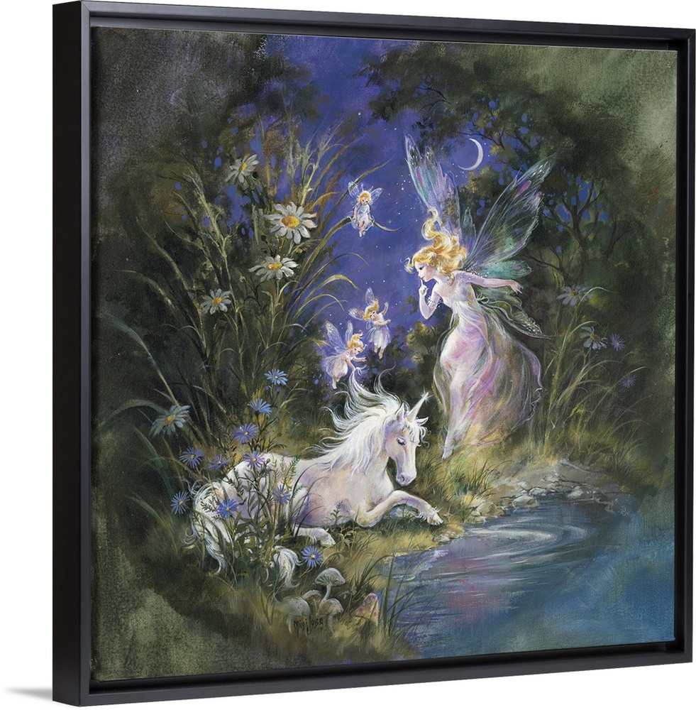 <p>Whimsical contemporary fantasy artwork of fairies and unicorns in an enchanted garden.</p>