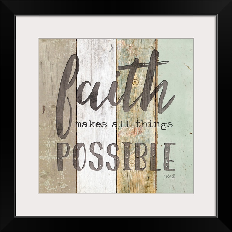 <p>Inspirational sentiment about faith on a wooden board background.</p>