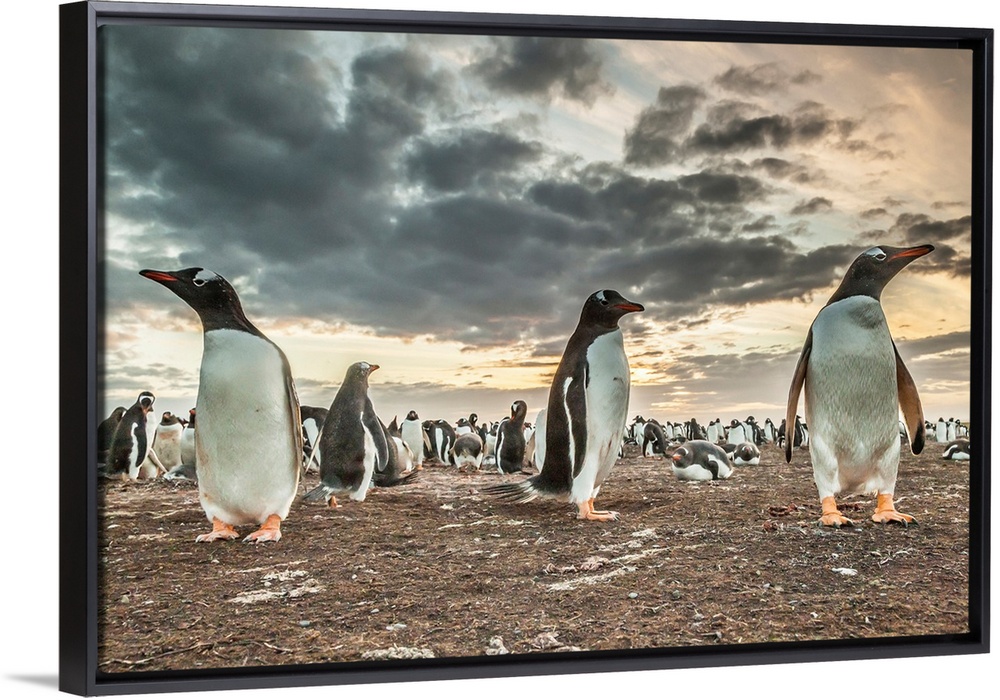 <p>Falkland Islands, Bleaker Island. Gentoo penguin colony at sunset.</p>