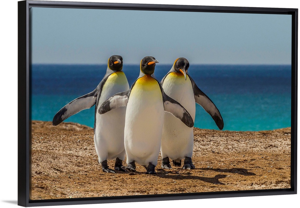 <p>Falkland Islands, East Falkland, Volunteer Point. Three King penguins.</p>