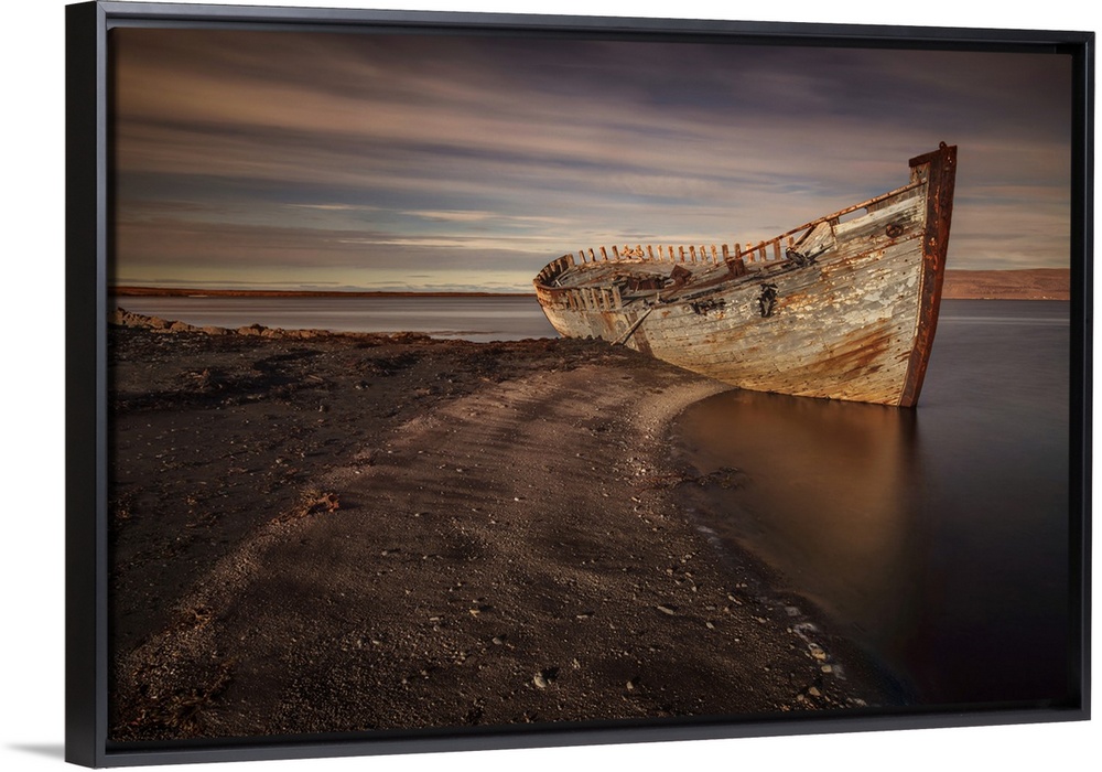 <p>Decaying hull of an abandoned boat on the beach in Iceland.</p>