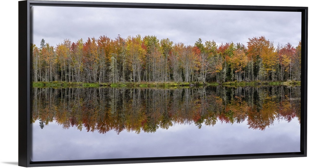 <p>Fall color panorama with reflections in Maine</p>