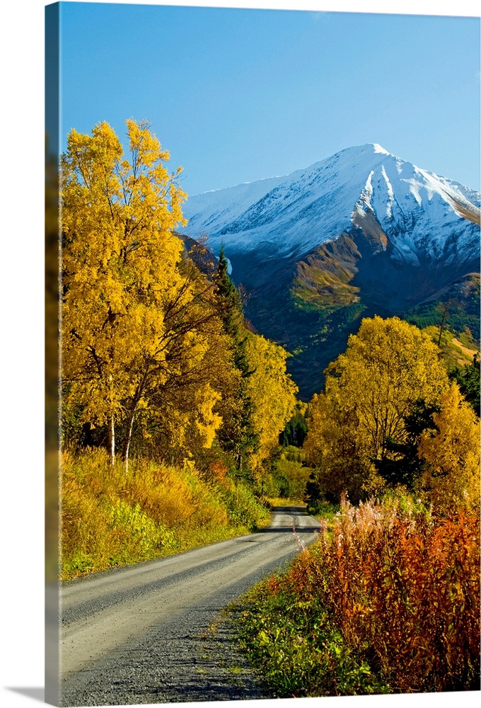 <p>Fall colors and snowcapped peaks on the Palmer Creek Road near Hope in the Chugach National Forest on the Kenai Peninsula in southcentral Alaska.</p>