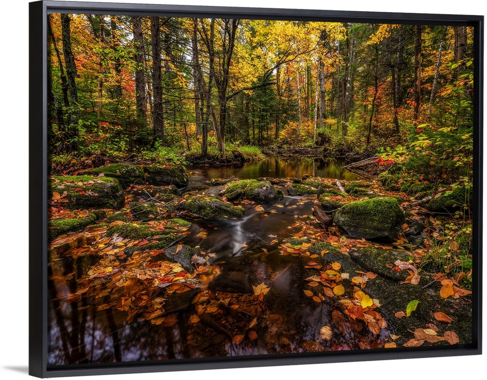 <p>Fall colours along a remote stream in rural Ontario, Algonquin Provincial Park; Ontario, Canada.</p>