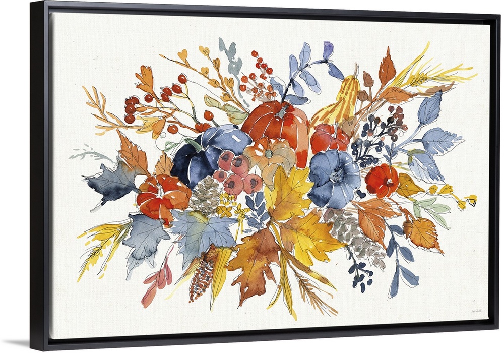 Art Decorative Art Florals Leaves Pumpkin Four Seasons Fall Painting Anne Tavoletti Watercolor