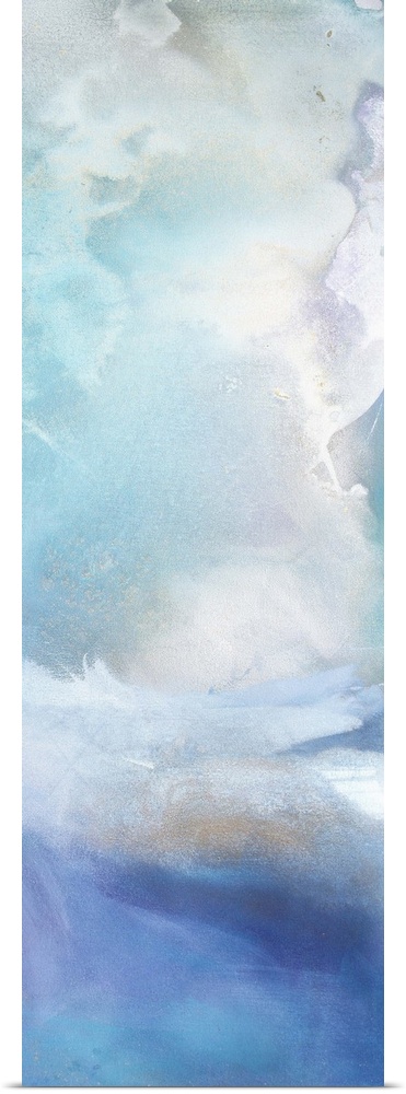 <p>Contemporary abstract painting using washed out cloud like textures surrounding vibrant splashes of color.</p>