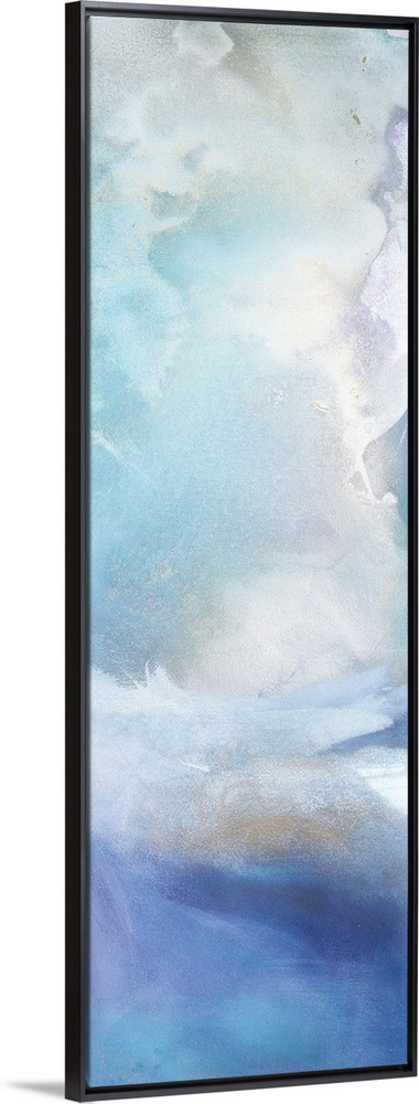 <p>Contemporary abstract painting using washed out cloud like textures surrounding vibrant splashes of color.</p>