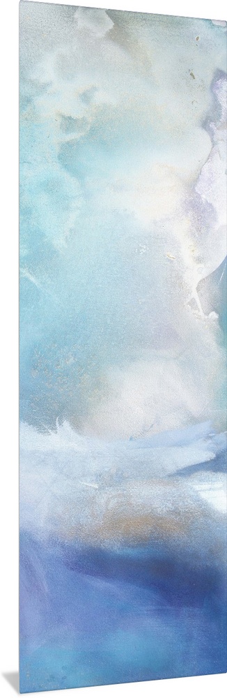 <p>Contemporary abstract painting using washed out cloud like textures surrounding vibrant splashes of color.</p>