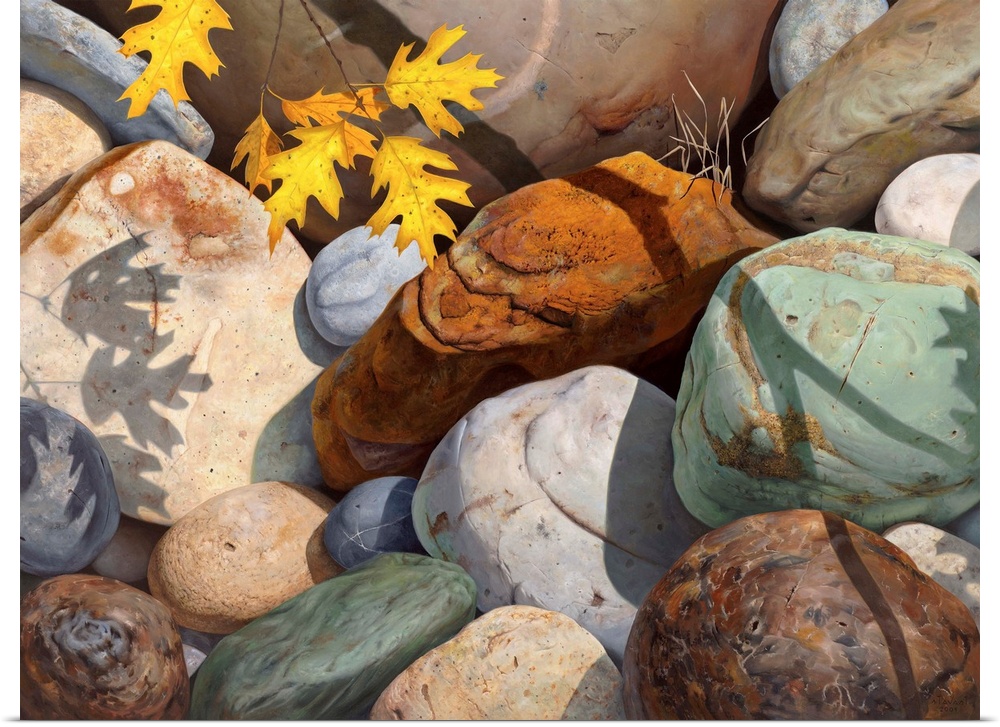 <p>Stephen Stavast faithfully recreates serene scenes of river stones and pebbles, perfectly capturing every detail, shine, and ripple.</p>