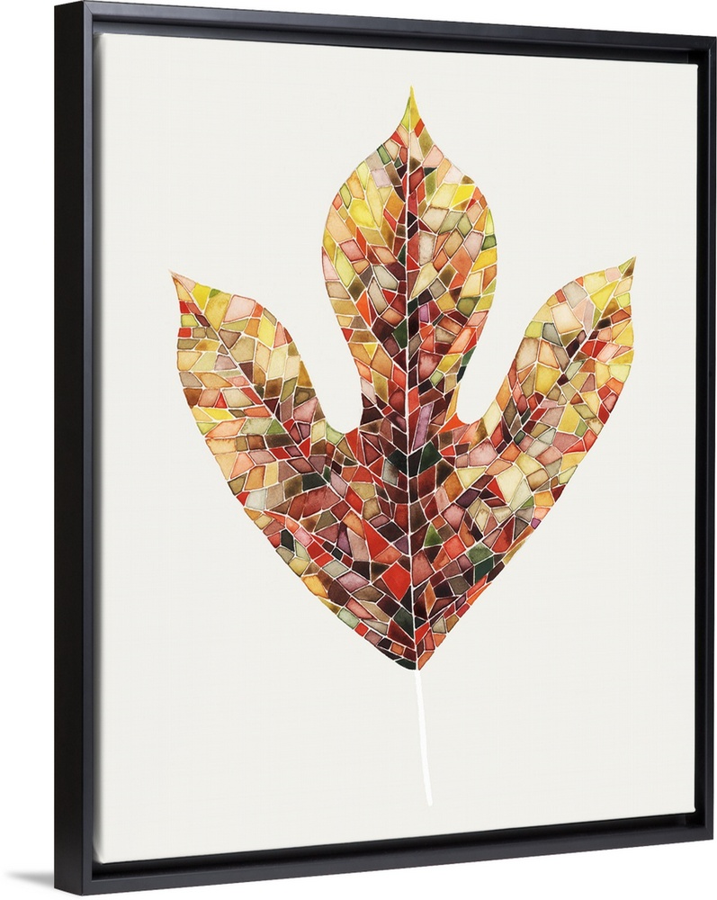 <p>Outline of a leaf with orange and yellow shapes within, resembling a mosaic.</p>