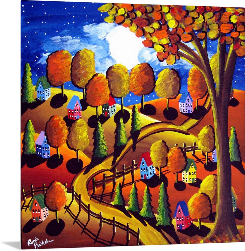 Art Renie Britenbucher Landscapes Folk Art Four Seasons Fall Countryside Road