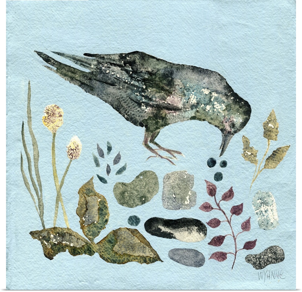Art Wyanne Art Blue Wall Art Contemporary Art Painting Watercolor Wildlife Bird Crow and Raven