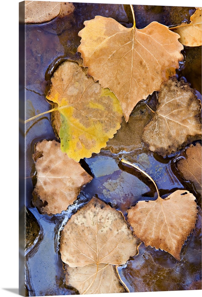 <p>Fallen leaves decaying the waters of the Virgin River, Zion National Park, Utah. USA</p>