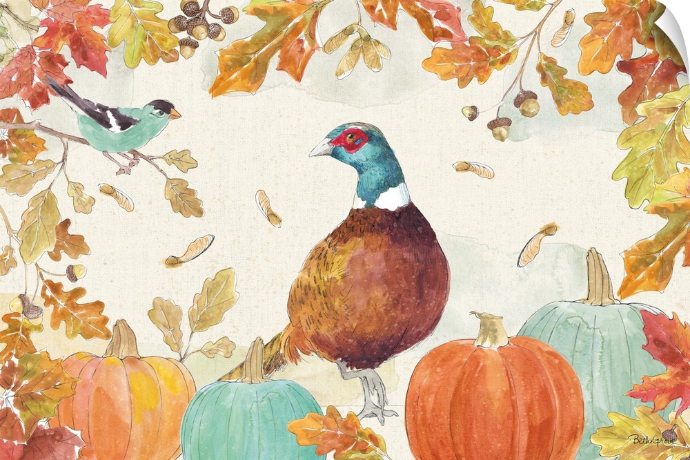 Art Decorative Art Four Seasons Fall Beth Grove Holidays Thanksgiving Painting Watercolor Pheasant and Partridge