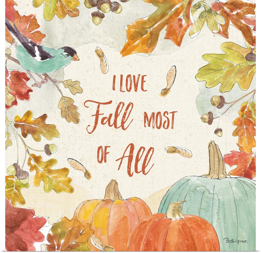 Art Decorative Art Four Seasons Fall Beth Grove Holidays Thanksgiving Painting Typography & Calligraphy Watercolor