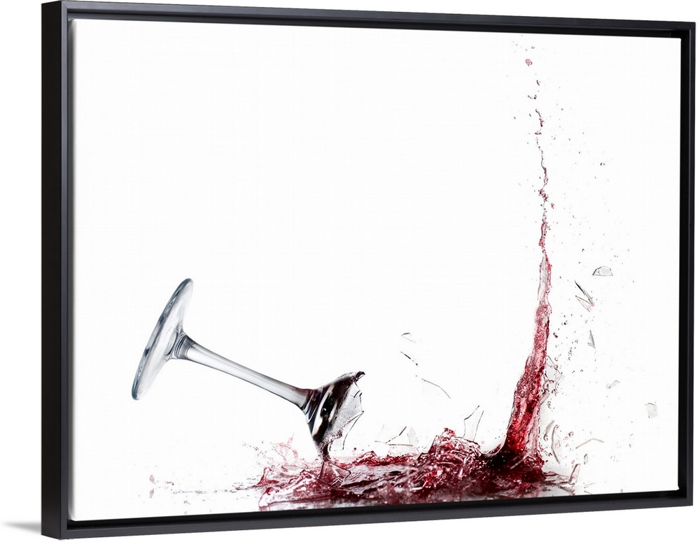 <p>Giant photograph displays a piece of stemware filled with vino as it crashes into the ground and the liquid splashes out.</p>
