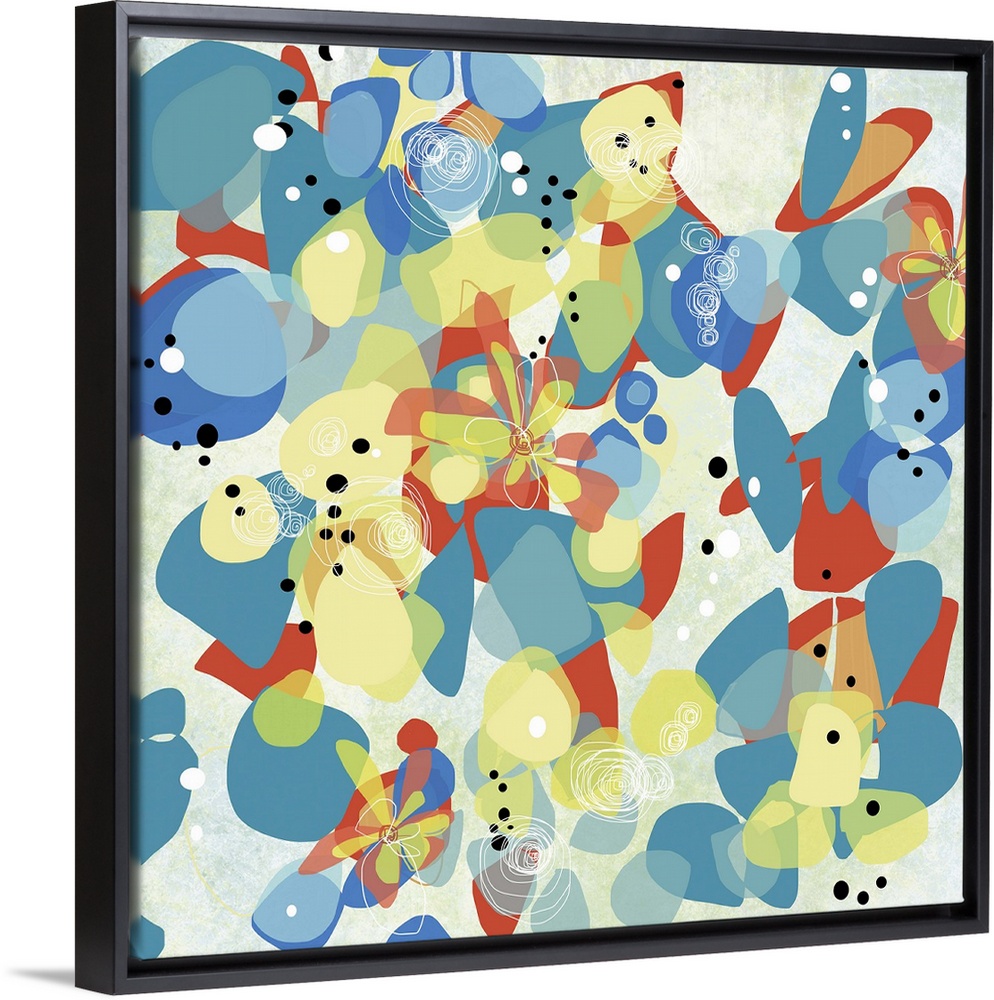 <p>Shapes fall and land as if they are falling on water in a haphazard pattern...nature inspired.</p>