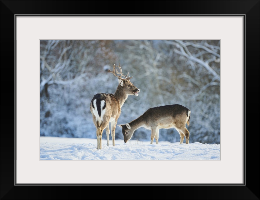 <p>Fallow deer (Dama dama) on a snowy meadow, Bavaria, Germany</p>