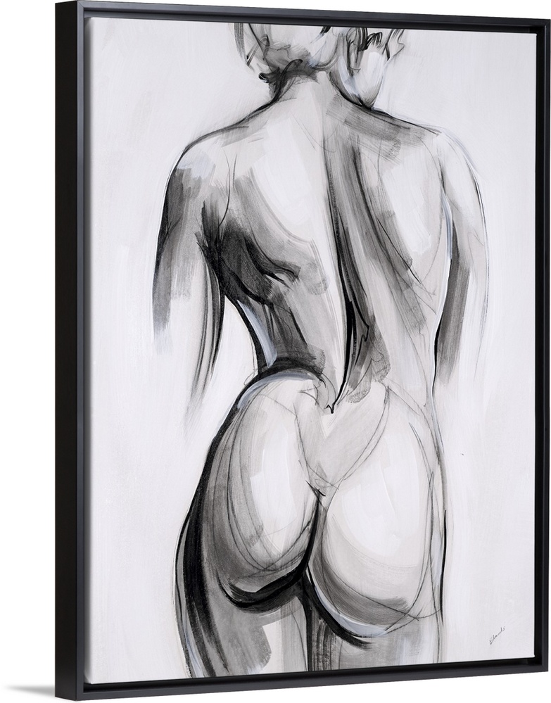 <p>Contemporary figurative abstract with a woman's back and bottom in shades of gray, black, and white.</p>