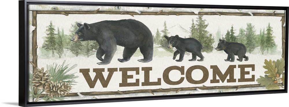 <p>A welcome sign featuring a mother black bear and two cubs.</p>