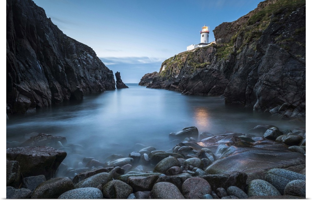 <p>Fanad Head (Fanaid) lighthouse, County Donegal, Ulster region, Ireland, Europe. View of the lighthouse from the down of the cove.</p>