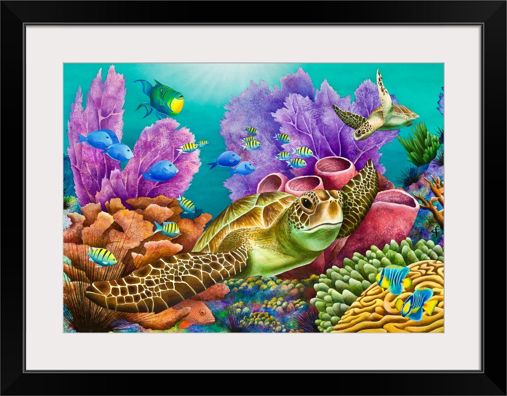 <p>Colorful tropical themed artwork using bright and vibrant colors.</p>