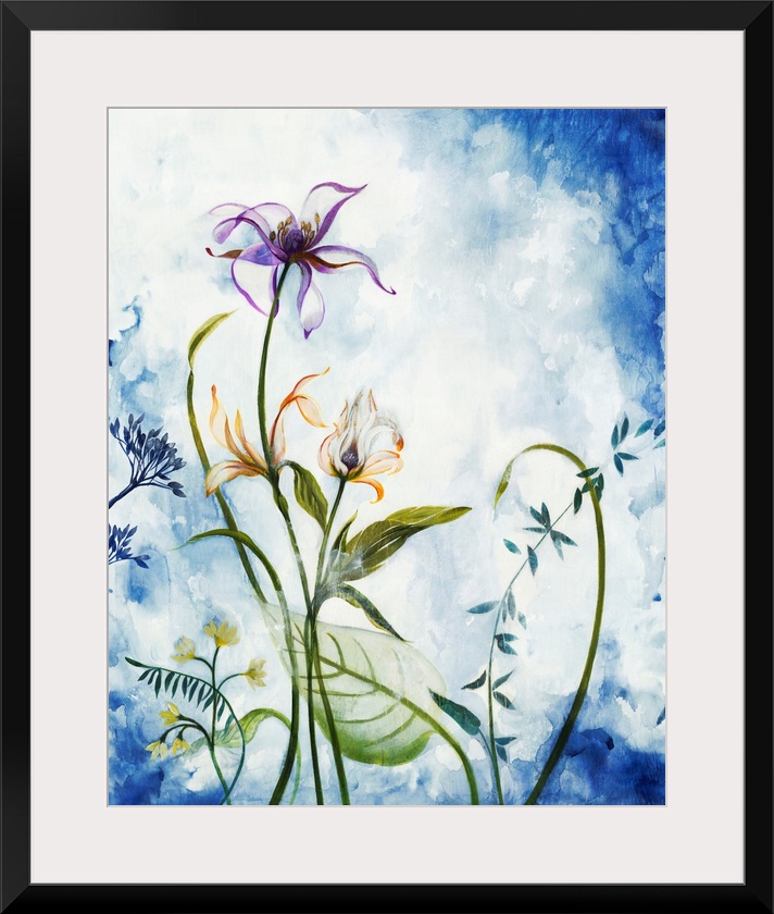 Art Transitional Blue Wall Art Contemporary Art Florals Painting