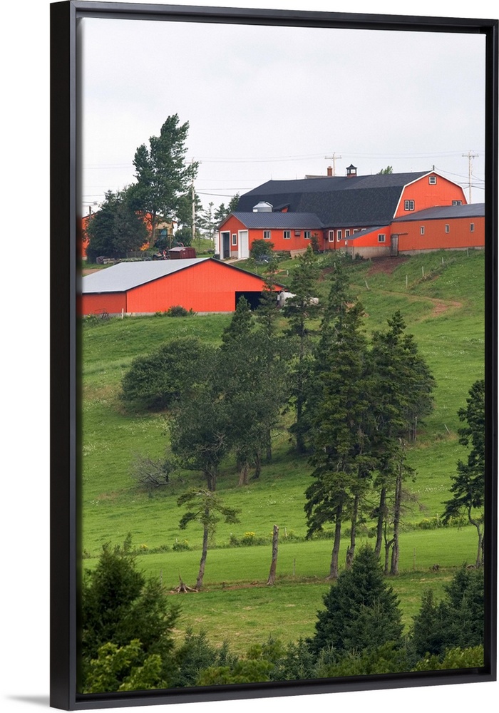 <p>Farm and red barn on a hill at New Glasgow, Prince Edward Island, Canada...canada, canadian, prince edward island, new glasgow, farm, farming, barn, red barn, agriculture</p>
