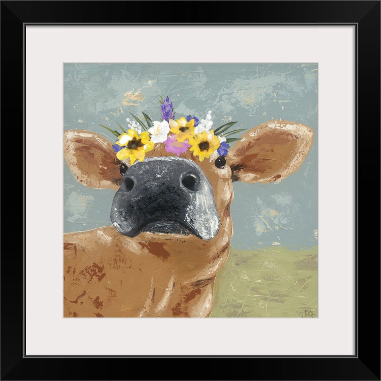 Art Blue Wall Art Decorative Art Painting Jade Reynolds Wildlife Cow