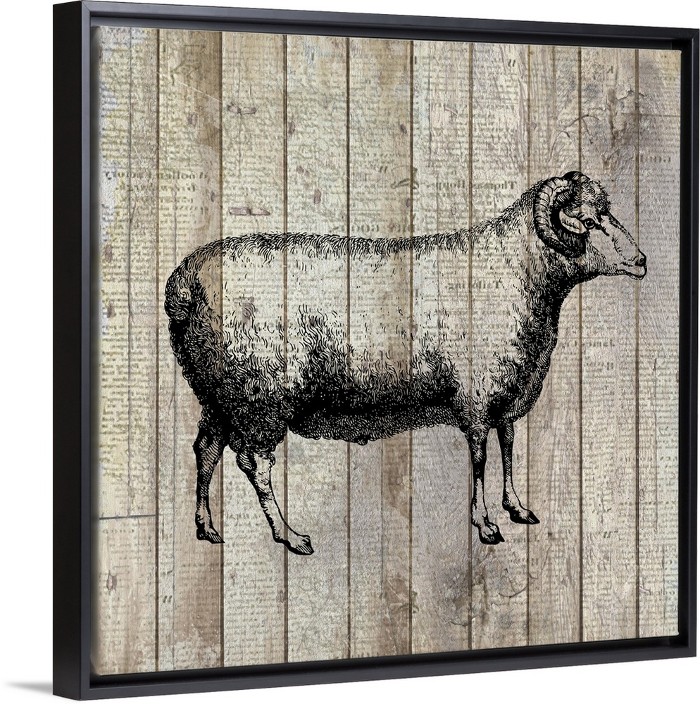 <p>A painting of a sheep on an aged wood panel background with a very faint text overlay.</p>
