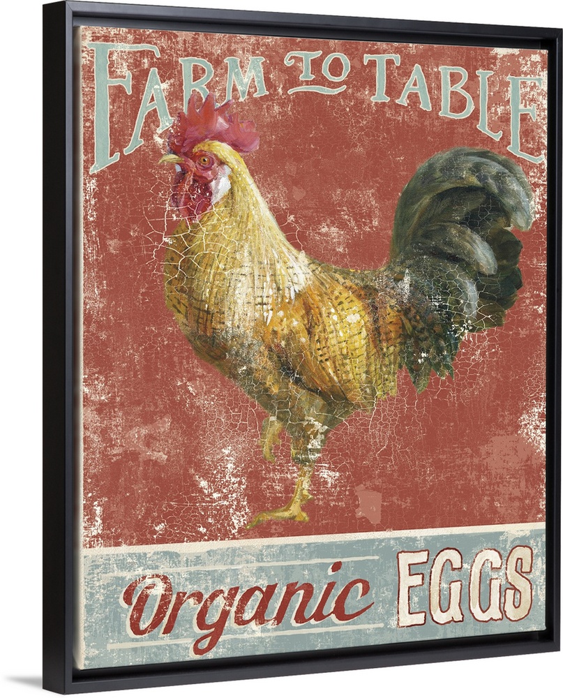 <p>Contemporary folk art decor of a rustic weathered sign for farm fresh eggs.</p>