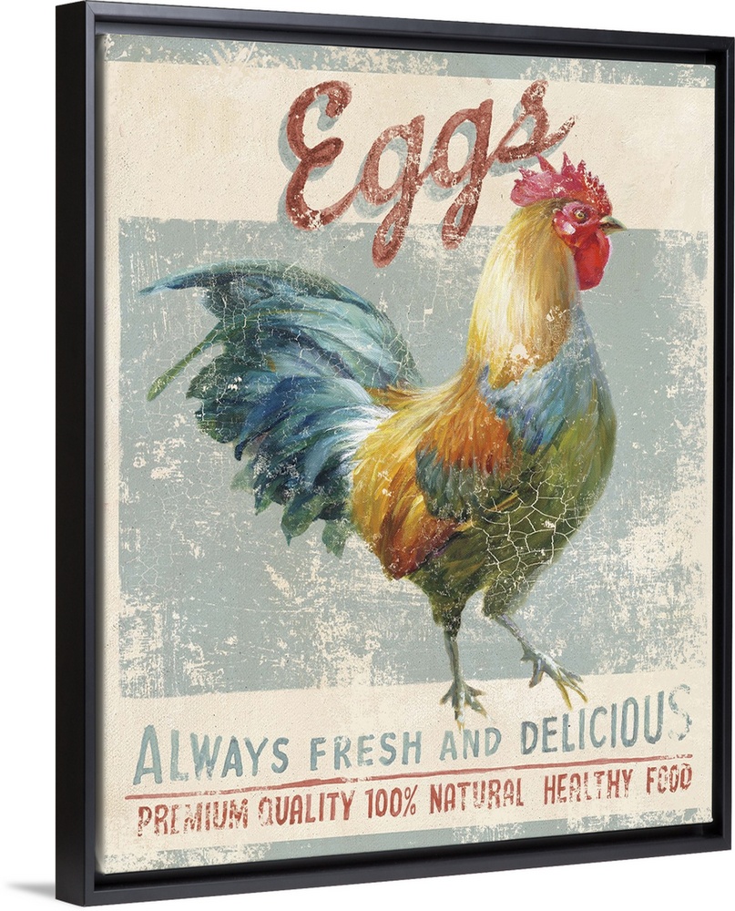 <p>Contemporary folk art decor of a rustic weathered sign for farm fresh eggs.</p>
