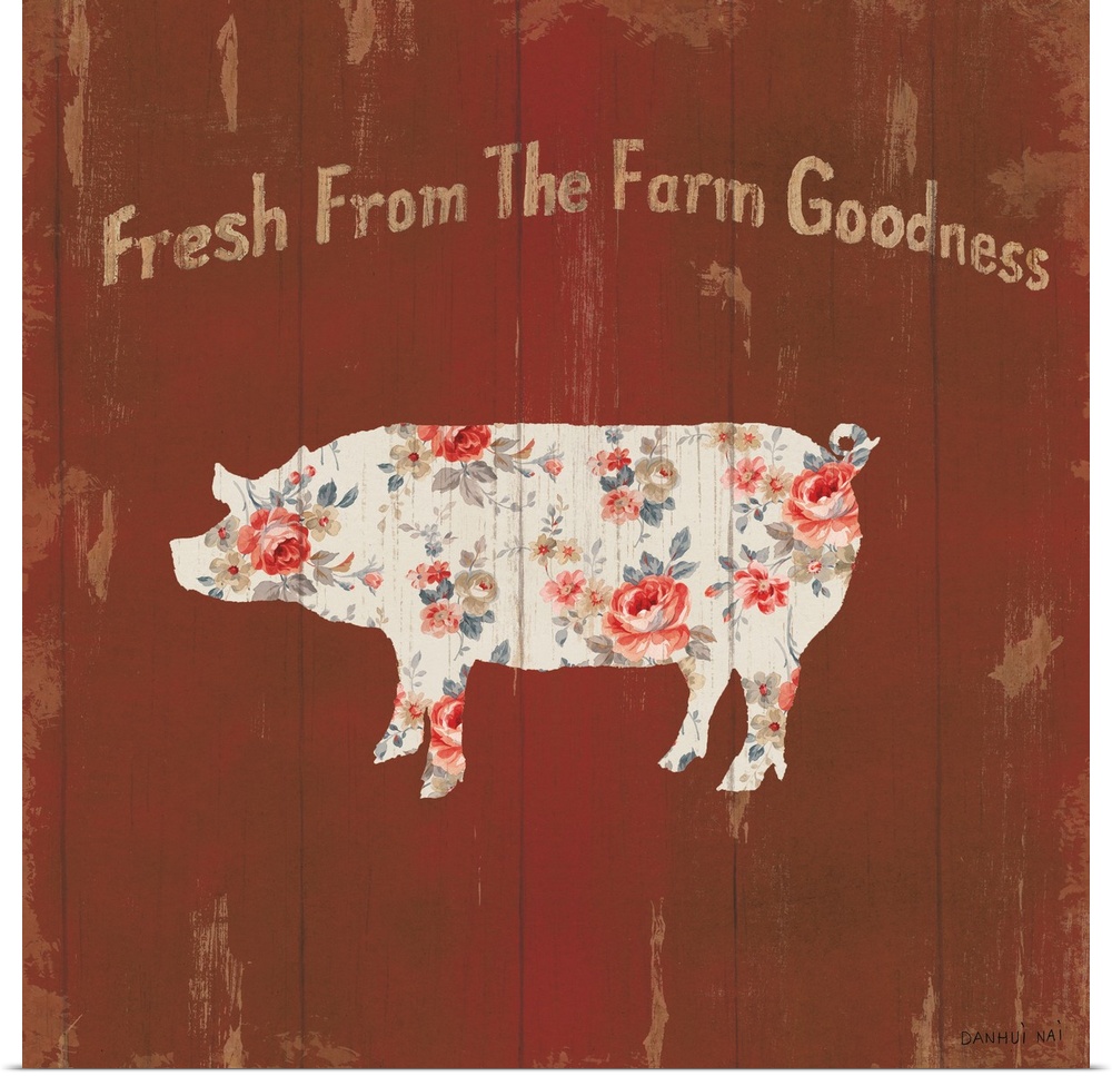 Art Decorative Art Florals Danhui Nai Painting Red Wall Art Pig