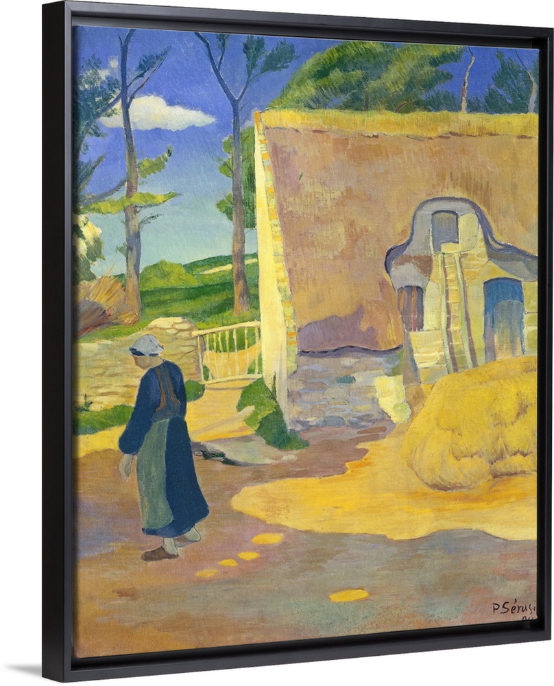 <p>Farmhouse at Le Pouldu, by Paul Serusier, 1890, French post-impressionist painting, oil on canvas. As a younger artist, Serusier joined Gauguin's circle which included Emile Bernard and Maurice Denis. Under their influence, he created this painting of Bri</p>