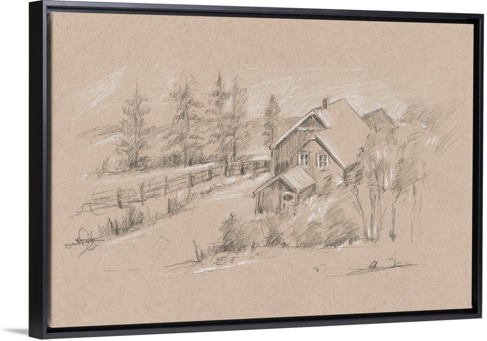 Art Farmhouse Decorative Art Drawing Ethan Harper Landscapes Barn Countryside