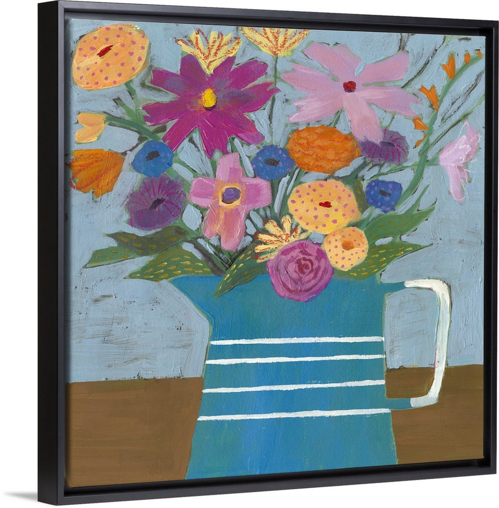 <p>Folk art painting of bouquet of flowers in a farmhouse pitcher.</p>