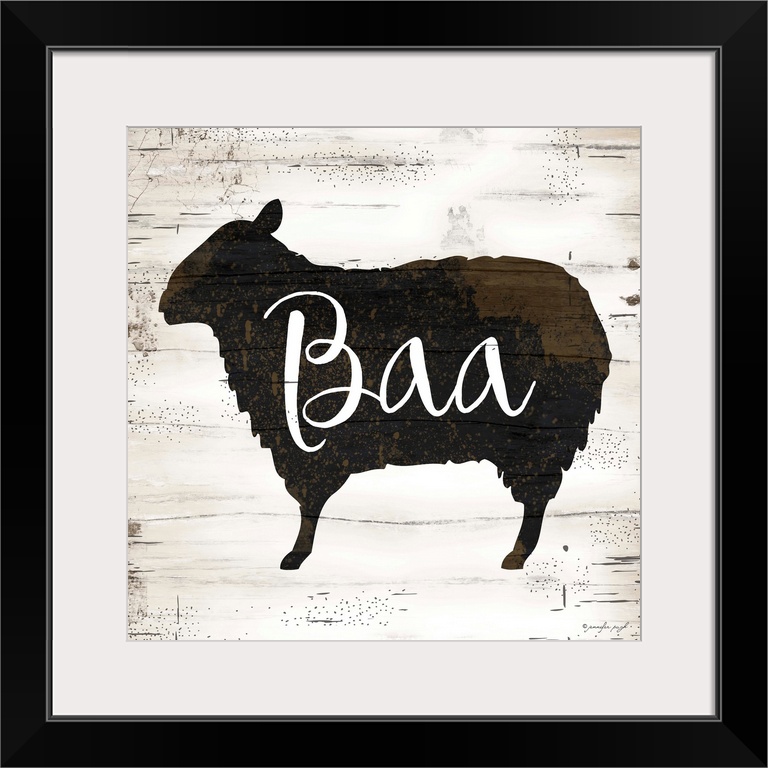 <p>Rustic art of the silhouette of a sheep with script text over it, on a background with an old wood texture.</p>