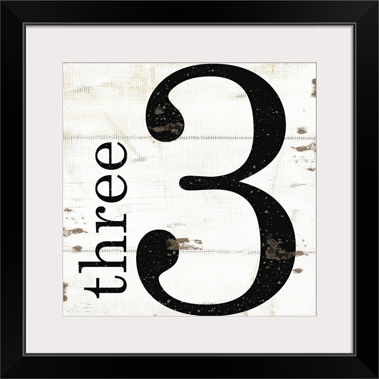 <p>Graphic art with the number three bold and large in the center, and the word three written smaller, vertically next to it, on a textured background of thick horizontal stripes in neutral tones.</p>
