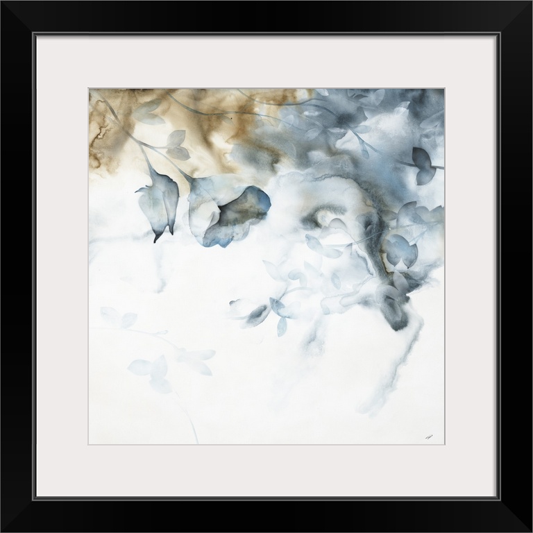<p>Square abstract floral painting in shades of gray and brown.</p>
