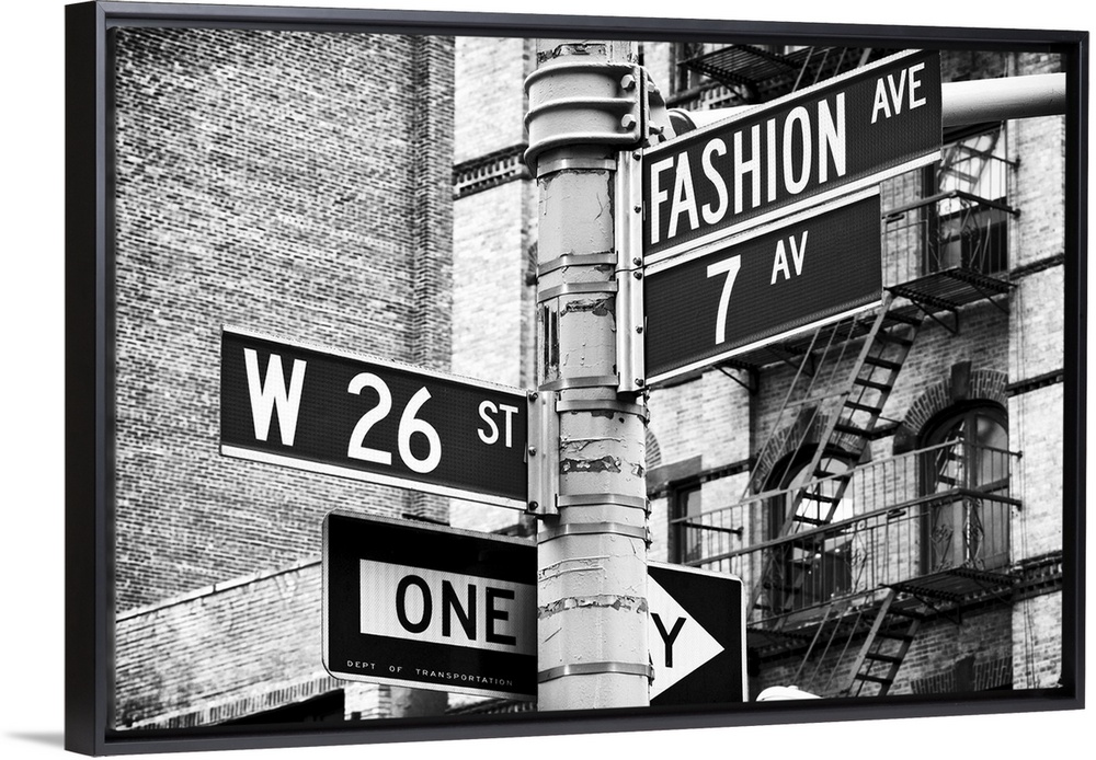 <p>Post with street signs for West 26th street, Fashion Avenue, and 7th Avenue in New York.</p>