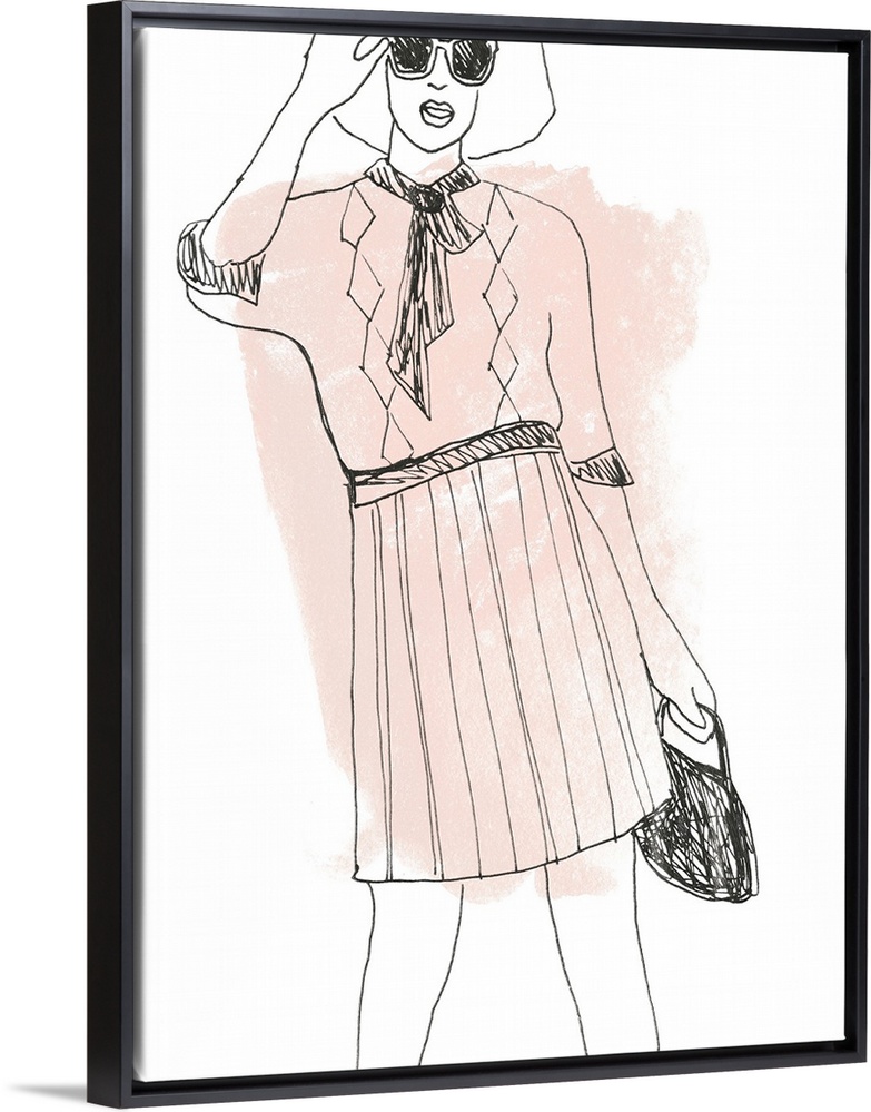 <p>Black and white fashion sketch on a white background with blush pink brushstrokes.</p>