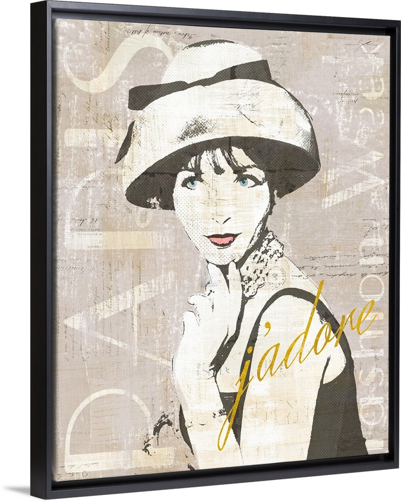 <p>Paris Fashion Week collage in gray, black, and white with "j'adore" written in gold a sparkle font.</p>