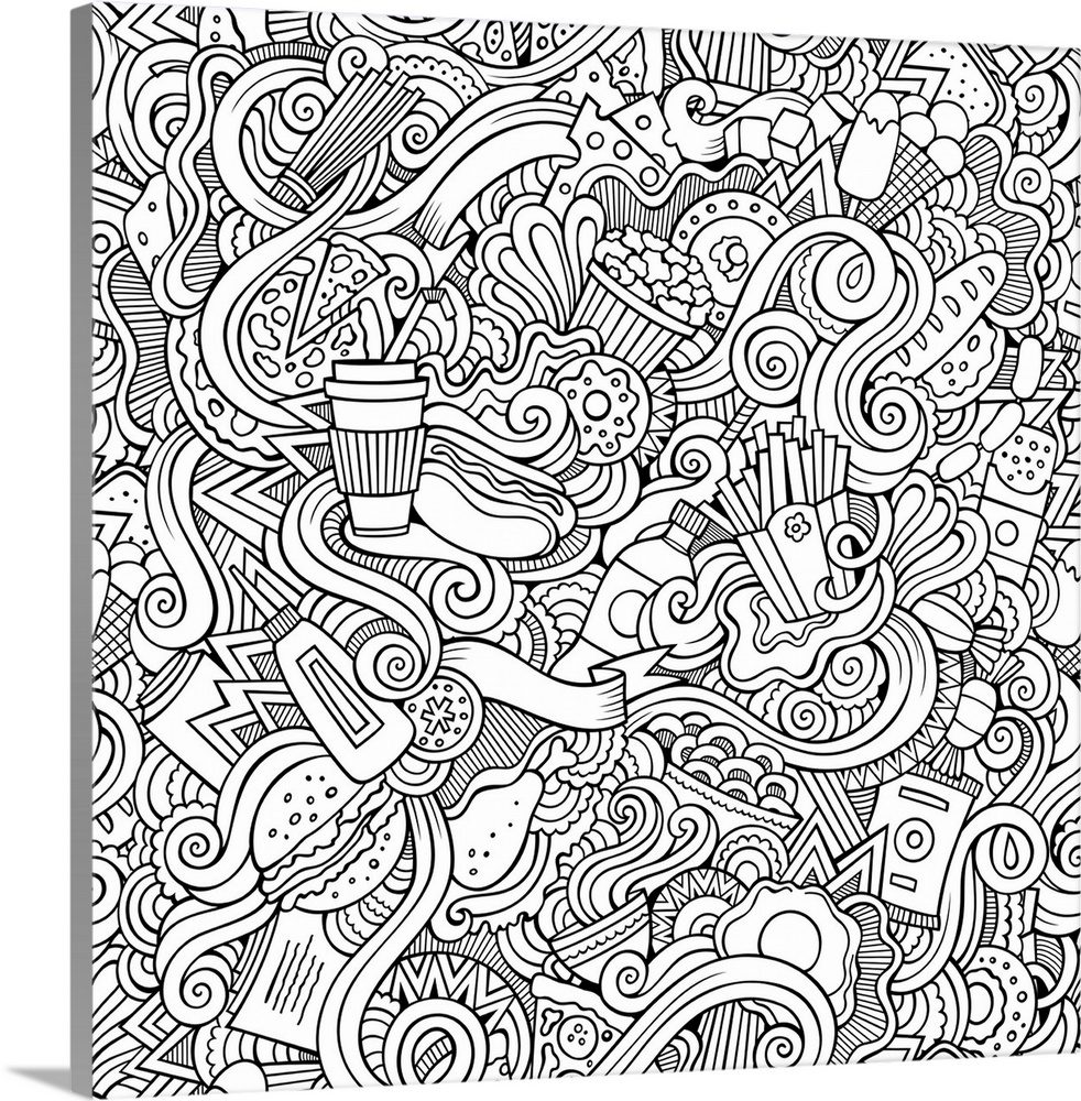 <p>A design featuring several junk food items, including fries, burgers, and soda. Perfect for Coloring Canvas.</p>