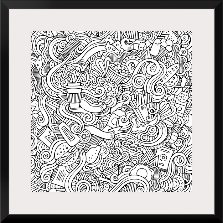 <p>A design featuring several junk food items, including fries, burgers, and soda. Perfect for Coloring Canvas.</p>