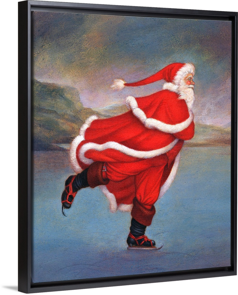 <p>Contemporary painting of Santa Claus ice skating on a frozen lake.</p>