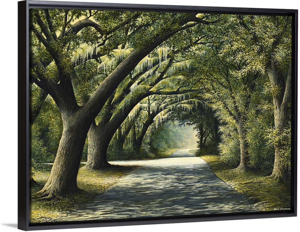 <p>Painting of a shady path through a grove of trees.</p>