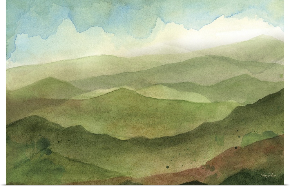 Art Decorative Art Green Wall Art Landscapes Countryside Valley Painting Watercolor