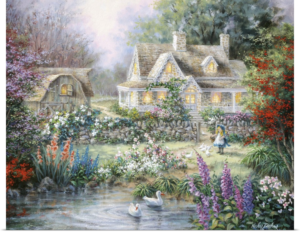 <p>Nicky Boehme imagines a world full of light and goodness in paintings that capture idyllic scenes of the laid-back life. Boehme is the consummate artist who painted as a young child and throughout her storied professional life. The dramatic interplay of light, color and mood create soothing scenery for wall art that will complement the atmosphere in quiet spaces such as bedrooms, reading nooks or dens. The world through the eyes and skilled brush strokes of Nicky Boehme glitters with romanticism and realism. You can almost taste the snow flurries covering a winter scene or hear the brook gurgling past a remote homestead.</p>