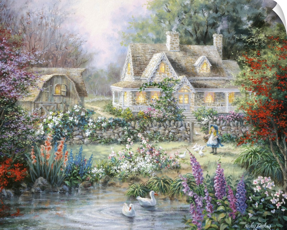 <p>Nicky Boehme imagines a world full of light and goodness in paintings that capture idyllic scenes of the laid-back life. Boehme is the consummate artist who painted as a young child and throughout her storied professional life. The dramatic interplay of light, color and mood create soothing scenery for wall art that will complement the atmosphere in quiet spaces such as bedrooms, reading nooks or dens. The world through the eyes and skilled brush strokes of Nicky Boehme glitters with romanticism and realism. You can almost taste the snow flurries covering a winter scene or hear the brook gurgling past a remote homestead.</p>